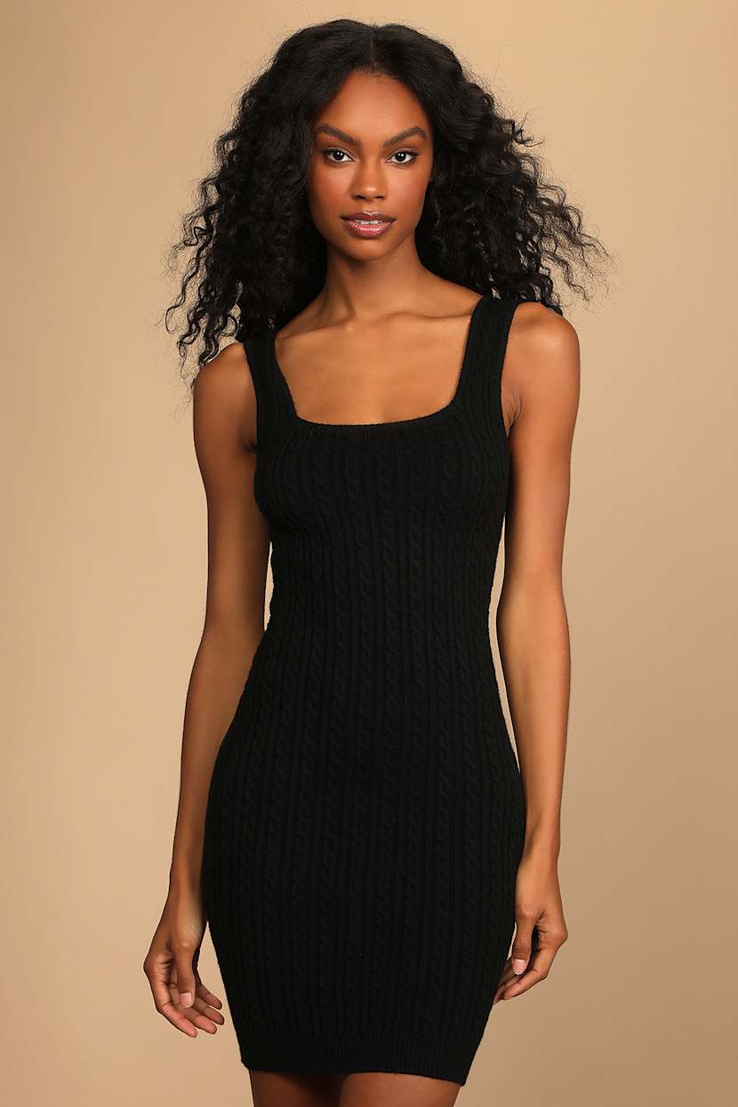 Black Mini Dress Knit Dress Bodycon Dress Sweater Dress Lulus